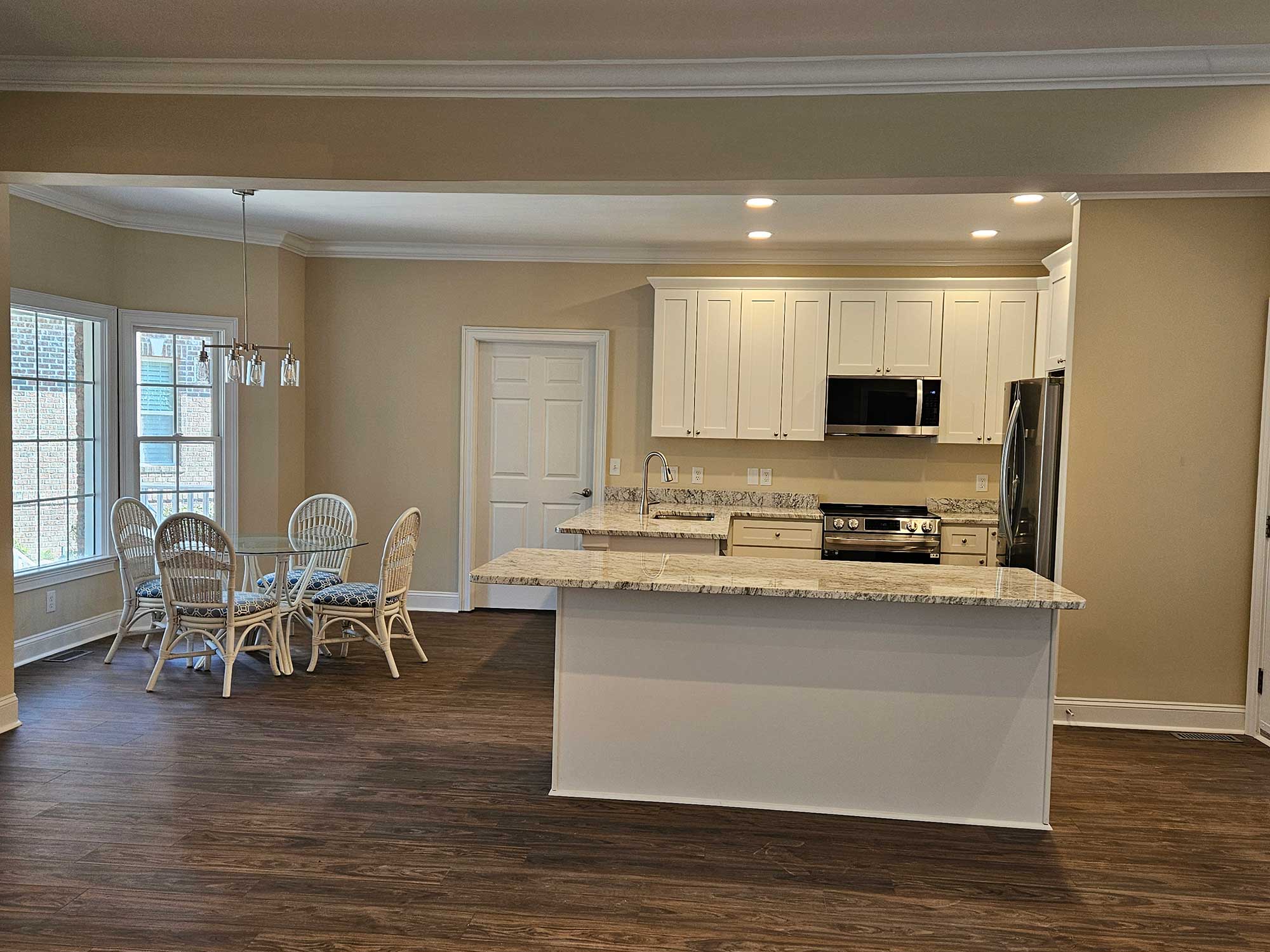 All new kitchen with shaker cabinets, new island, granite counters, all LG appliances, new lighting making it very bright & LVP flooring throughout entire home. The popcorn ceilings have been removed & the entire interior has been freshly painted. Upstairs you have 2 bedrooms that share a large bathroom where you find new vanities with new granite counters & lights.